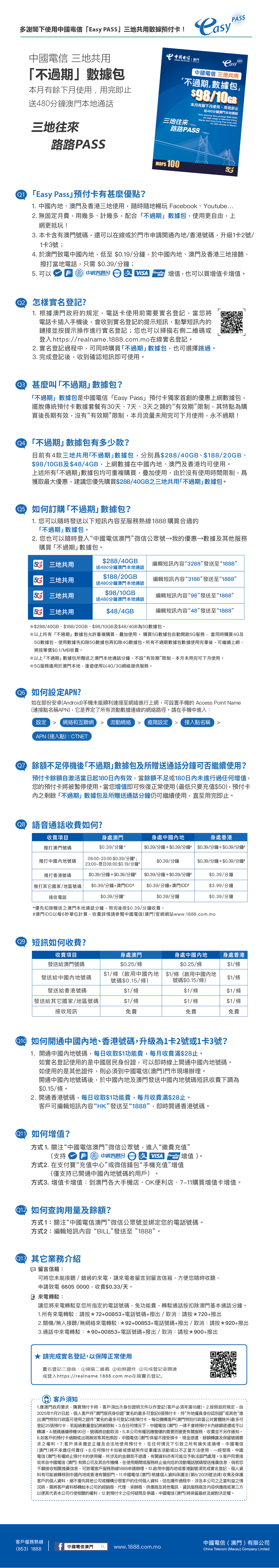 (1)中國電信(澳門)客戶