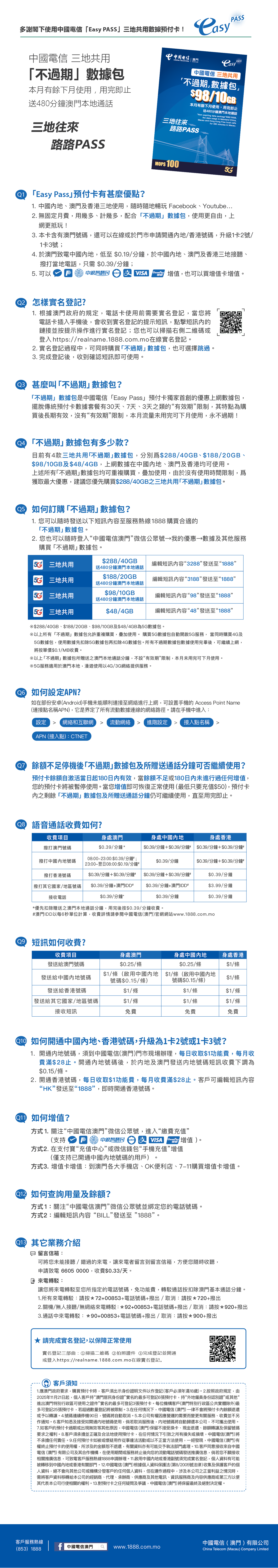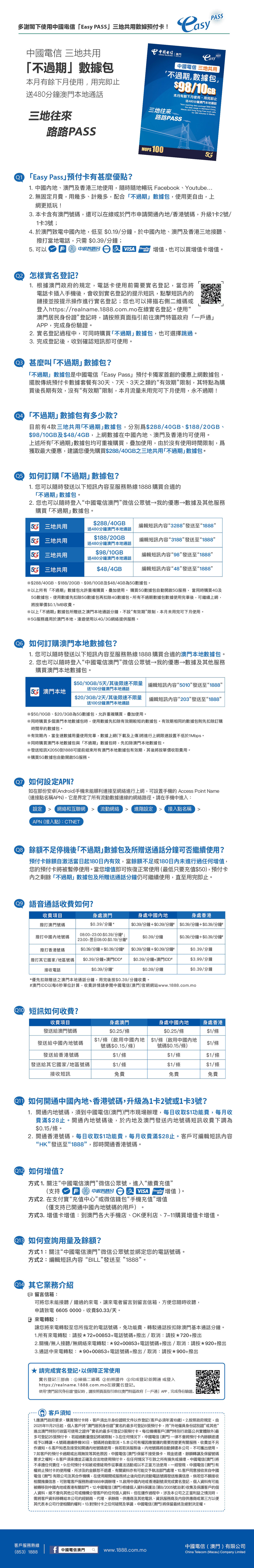 (1)中國電信(澳門)客戶
