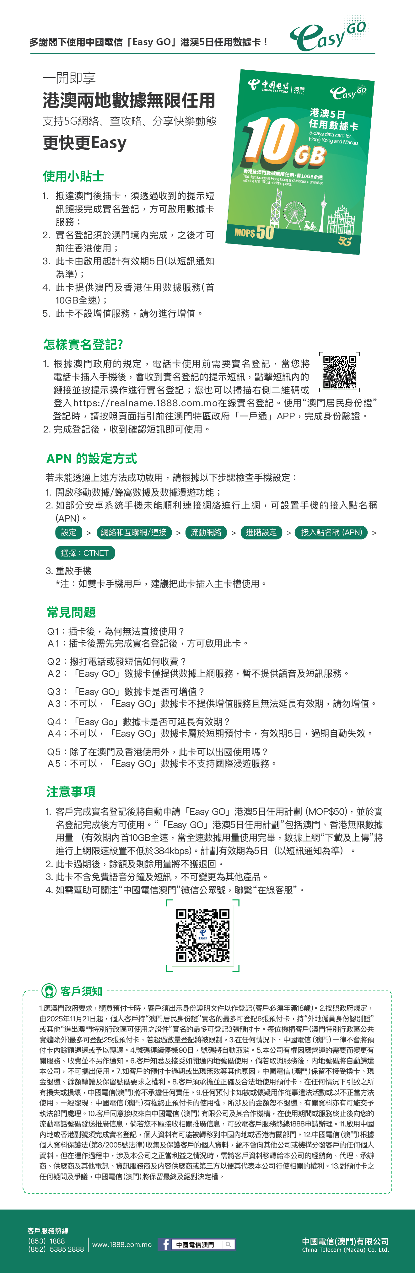 (1)中國電信(澳門)客戶