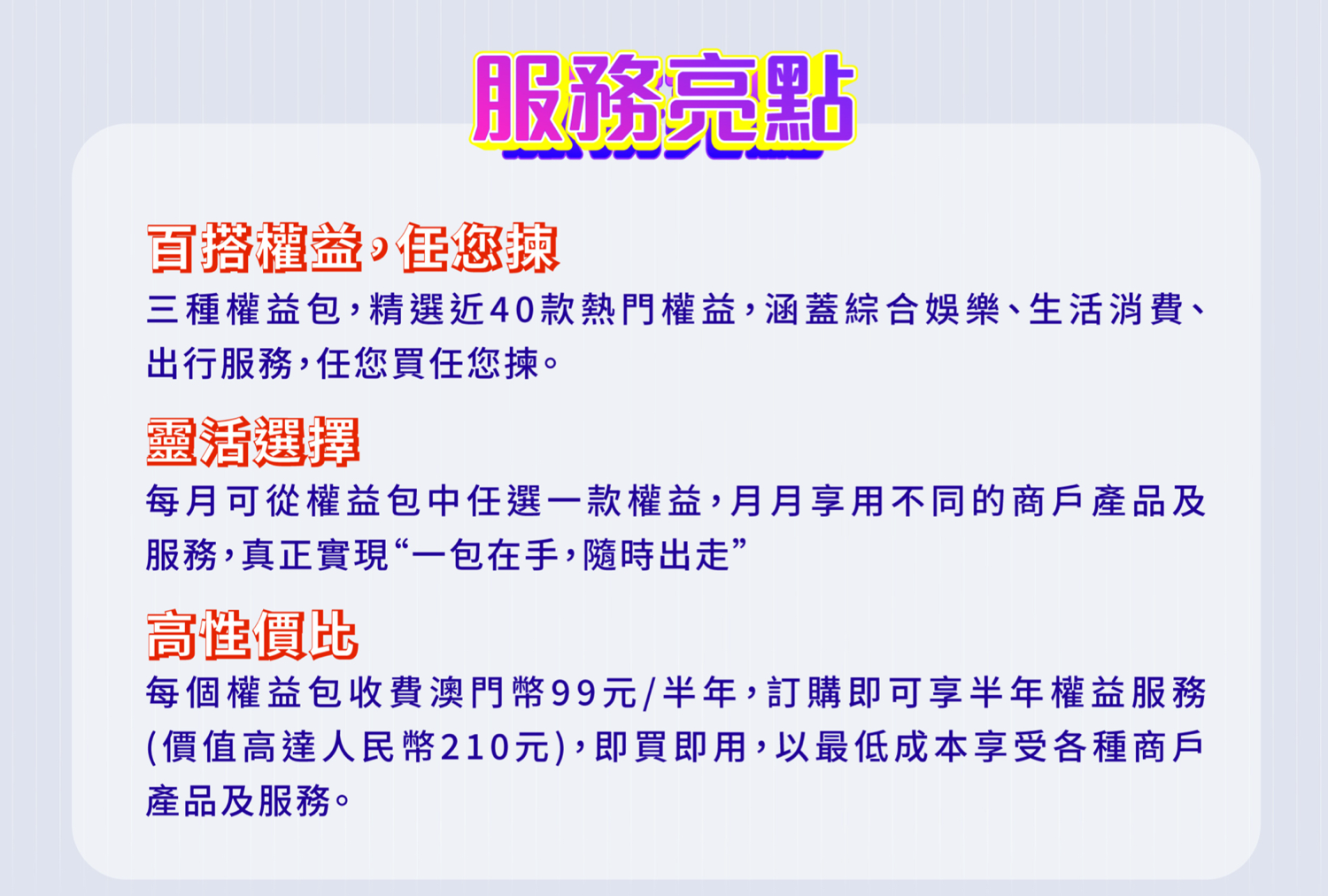 可辦理:選號上台、購買手機、領取優惠券和配對內地號碼轉台。