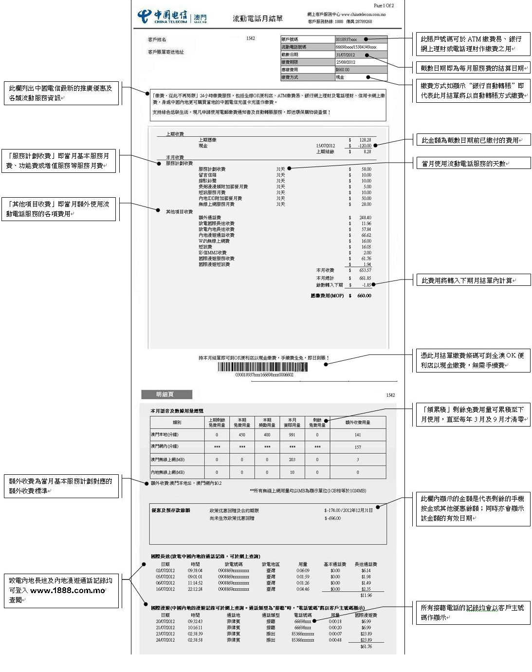 (1)中國電信(澳門)客戶